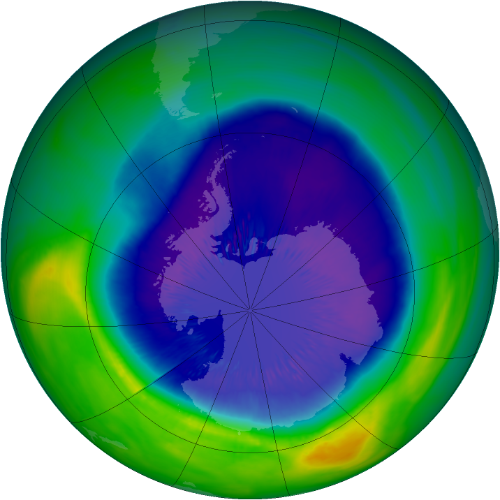 NASA image and graph by Robert Simmon, based on data from Ozone Hole Watch.