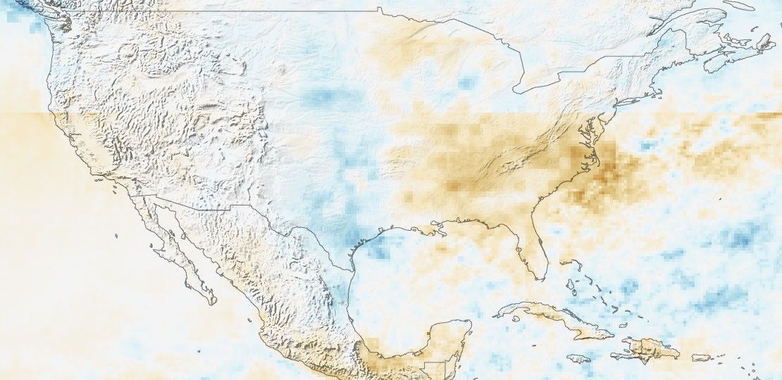 The image illustrates the severe drought conditions that settled over much of the eastern United States, particularly the Southeast, in the spring and summer of 2007. The only significant rain that came to the region during the period was from Tropical Storm Barry in June. Clearly, Barry did not deliver enough rain to break the drought; rainfall is still significantly below average in this image. The resulting dry conditions contributed to large wildfires that burned along the Florida-Georgia border in April and May.