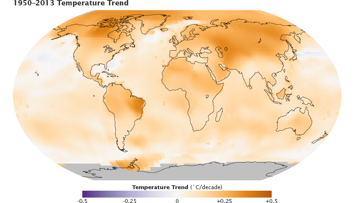 “Long-term trends in surface temperatures are unusual, and 2013 adds to the evidence for ongoing climate change,” said GISS climatologist Gavin Schmidt. “While one year or one season can be affected by random weather events, this analysis shows the necessity for continued, long-term monitoring.”