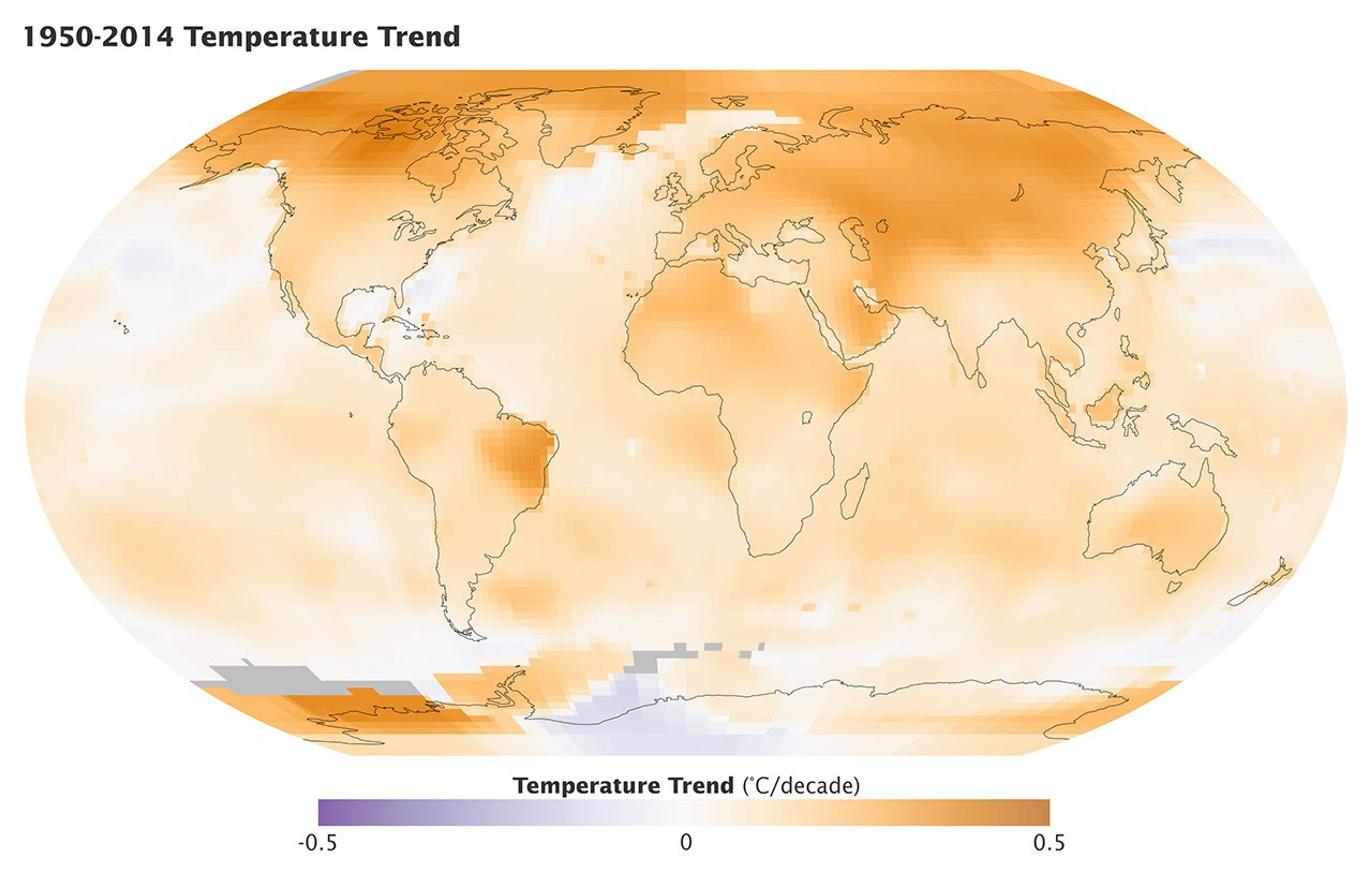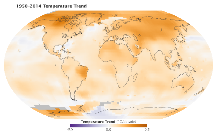 While 2014 temperatures continue the planet’s long-term warming trend, scientists still expect to see year-to-year fluctuations in average temperature caused by phenomena such as El Niño or La Niña. These phenomena warm or cool the tropical Pacific and are thought to have played a role in the flattening of the long-term warming trend over the past 15 years. However, 2014’s record warmth occurred during an El Niño-neutral year.