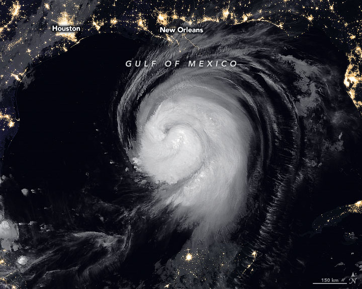 One worrisome aspect of this storm is how many oil refining and petrochemical facilities lie in its path. In anticipation of possible problems, NASA’s Applied Sciences Disasters team has been assembling datasets and imagery (based on optical and synthetic aperture radar sensors) from the days leading up to the storm. “We’ll use these to flag anomalous water extent and start assessing damage later in the week, when satellites again pass over after areas that the storm has hit,” explained NASA researcher Lori Schultz.