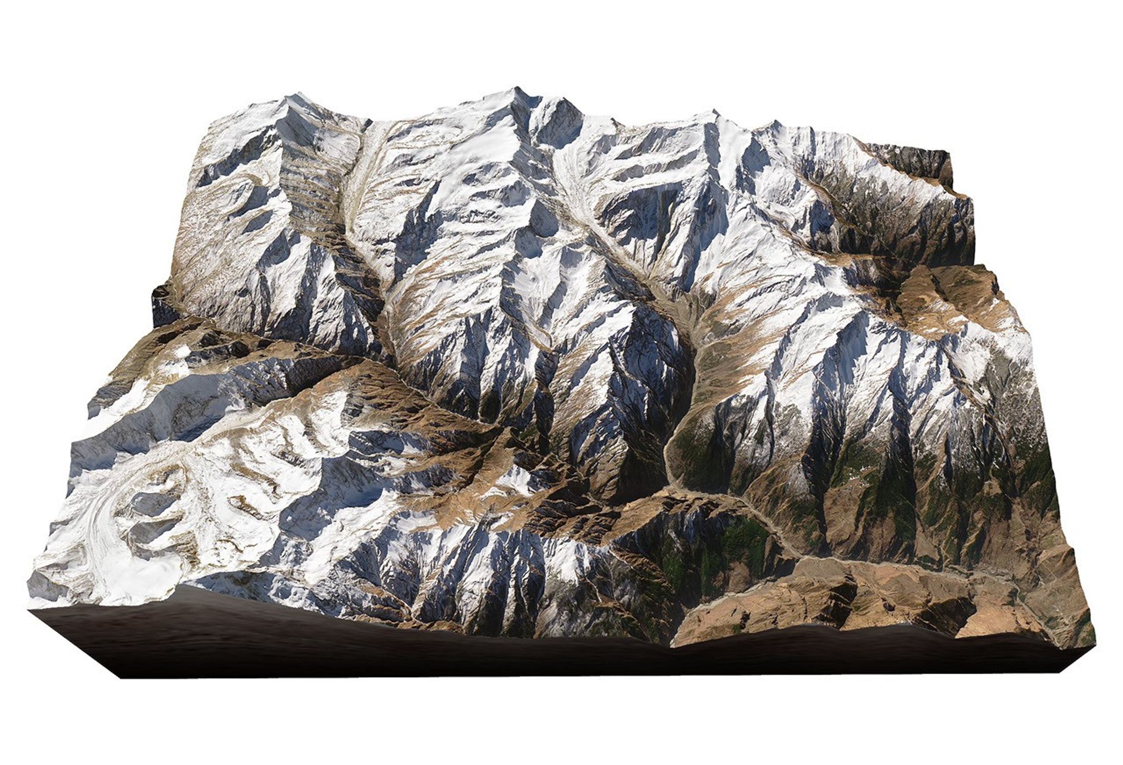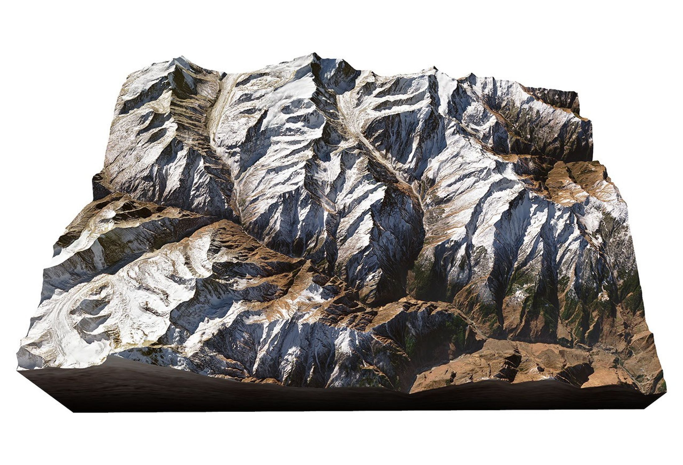 On February 21, 2021, the Operational Land Imager (OLI) on Landsat 8 captured a view of the landscape in the wake of the event. In the image above, natural-color Landsat 8 data were overlaid on a digital elevation model from the Shuttle Radar Topography Mission (SRTM) to depict the rugged topography.