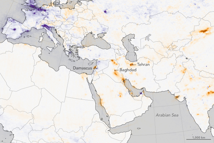 NASA Earth Observatory maps by Jesse Allen, using data provided courtesy of the Aura OMI science team . OMI was developed through a partnership between NASA and the Dutch and Finnish meteorological institutes and space agencies. By Adam Voiland, with information from Ellen Gray.