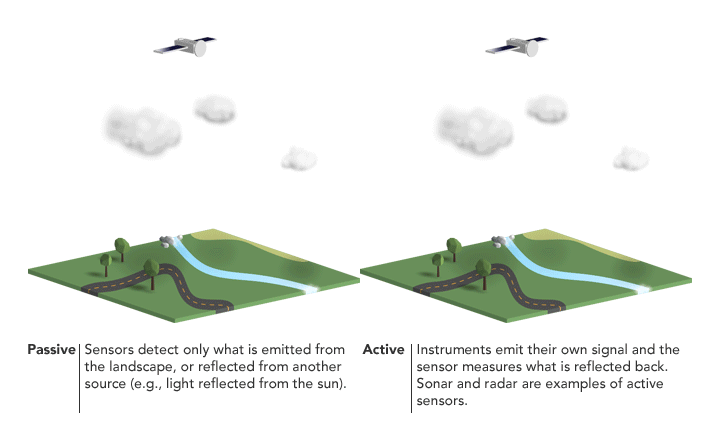 For all of these reasons, researchers have developed satellite instruments to measure the water hidden between soil particles. The instruments are either active or passive.