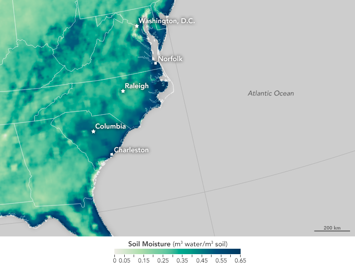 Not immediately visible, however, is the water residing in the soil. This water does not appear brilliantly blue or white, like the oceans or ice. In fact, it is hard to spot in natural-color satellite images.
