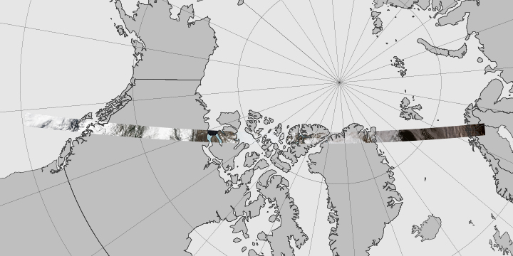 The swath in its entirety (below) stretches roughly 6,800 kilometers (4,200 miles) long by 200 kilometers (120 miles) wide. The scenes begin in Scandinavia, track across Greenland, and end in western Canada. To interactively explore the entire swath of images and to view more image highlights, read the full story here.