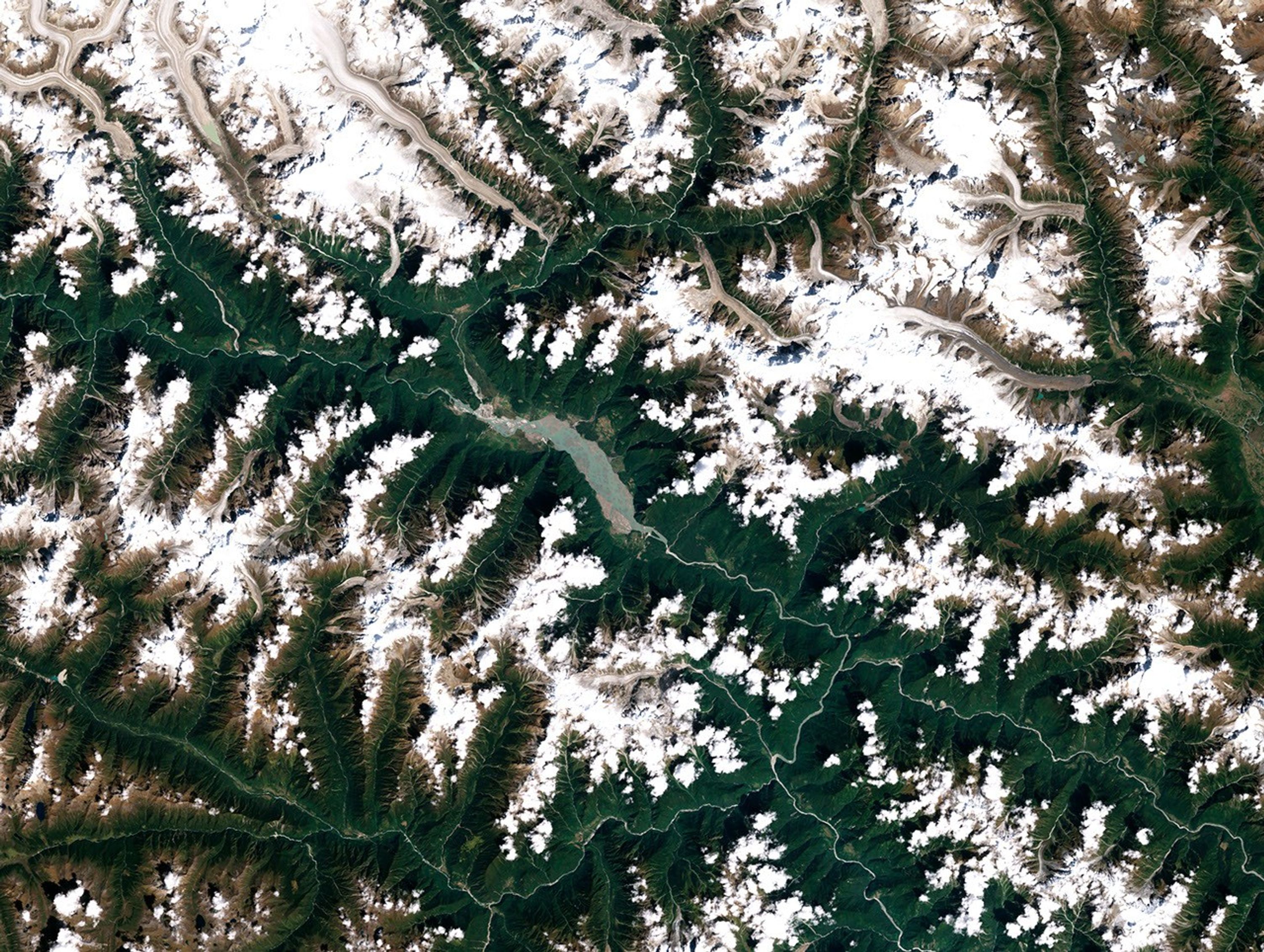 This wasn’t the first time that Zhamu Creek’s produced a large landslide. In 1900, another slide tore through the same gully and created a dam that breached after a month. The landslide that occurred in 2000 was the 11th largest on record, according to a list maintained by the United States Geological Survey.