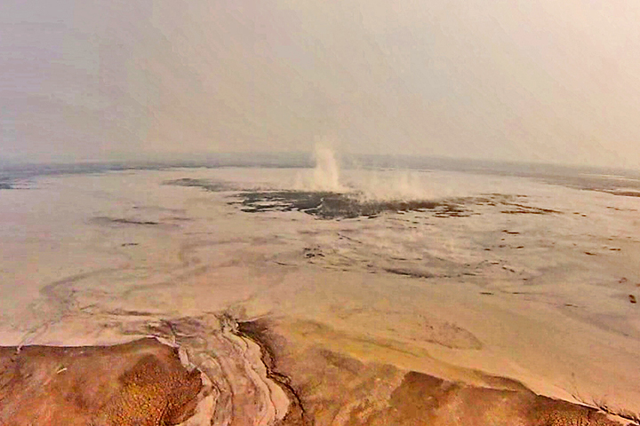 NASA Earth Observatory image by Joshua Stevens, using Landsat data from the U.S. Geological Survey. Drone photographs courtesy of Adriano Mazzini (University of Oslo). Story by Adam Voiland.