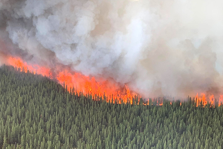 Fires happen in almost all of Earth’s biomes. In tropical rainforests in South America and equatorial Asia, people take advantage of dry spells to burn trees to clear land for farms and pasture. In coniferous forests in Russia, Canada, Scandinavia, and Alaska, fire is a routine sign that summer heat and lightning have arrived. Increasingly, fires are even spreading through the Arctic, where there is little to burn other than grasses, sedges, and a few shrubs. The photograph below shows an intense crown fire raging through stand of black spruce in a boreal forest in Alaska on June 19, 2019.