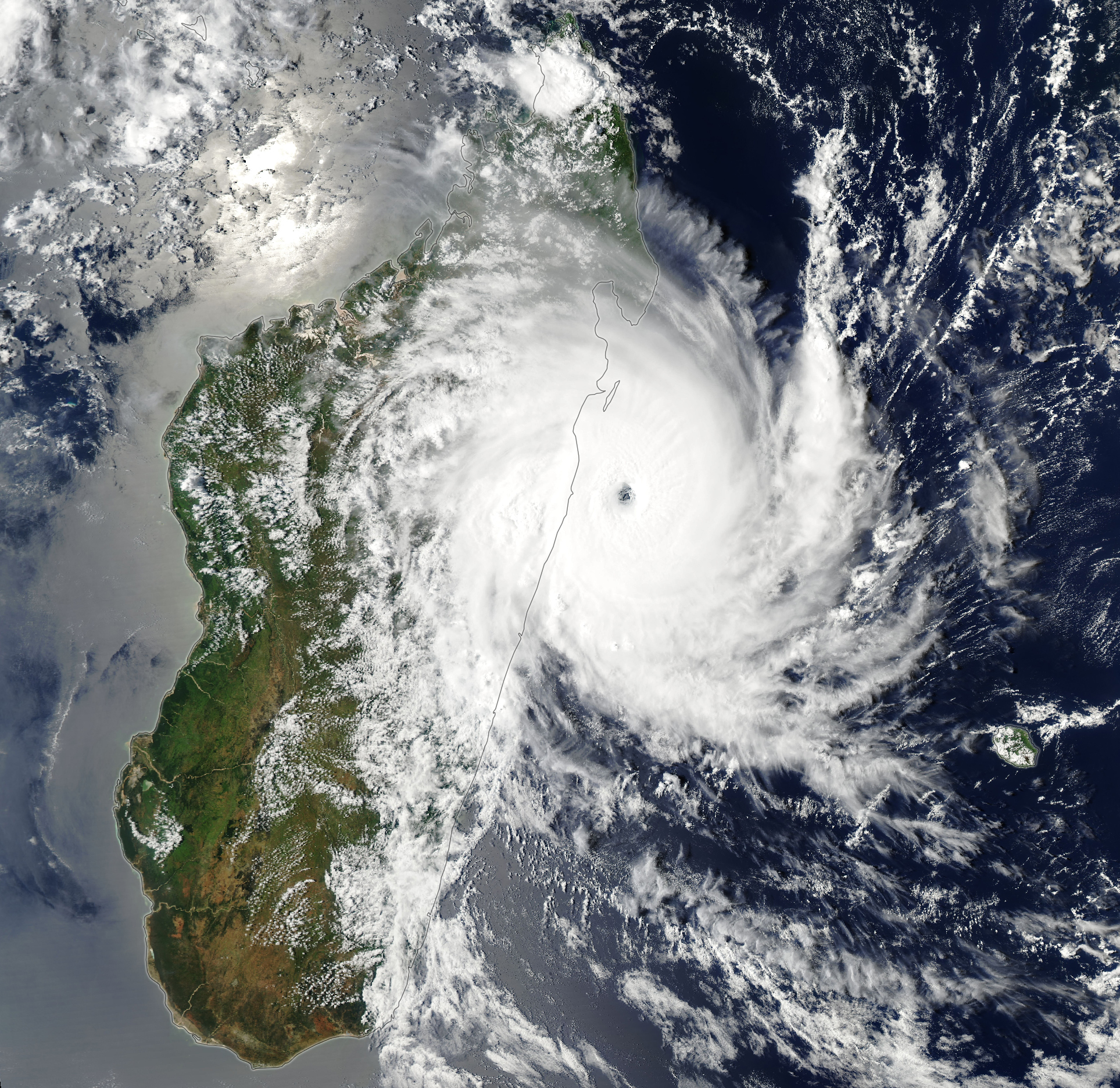 The MODIS (Moderate Resolution Imaging Spectroradiometer) on NASA’s Aqua satellite captured this image of Gezani as it neared Madagascar on February 10, 2026. At the time, the storm was undergoing rapid intensification. Its sustained winds peaked at 200 kilometers (125 miles) per hour before making landfall at Category 3 hurricane strength.