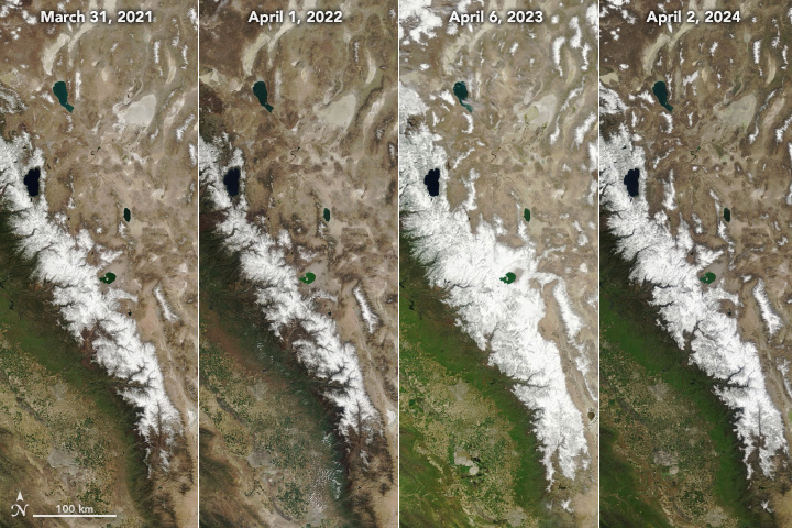 - NASA Earth Observatory World of Change: Snowpack in the Sierra Nevada. Accessed April 11, 2024.