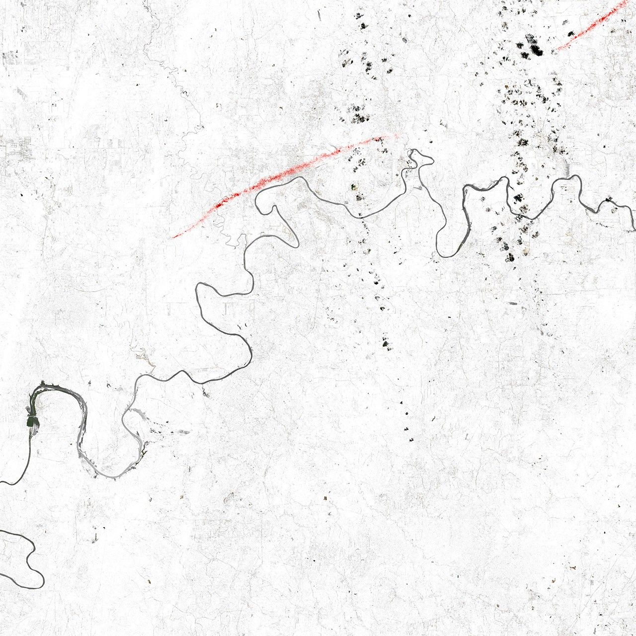 The visualization above highlights the location of tornado tracks in one of several areas in Alabama damaged by tornadoes on January 12, including Selma. Red areas are where there were larger differences between the two satellite images. Most of these differences are found along the tornado tracks, where trees were uprooted, and vegetation and structures were damaged.