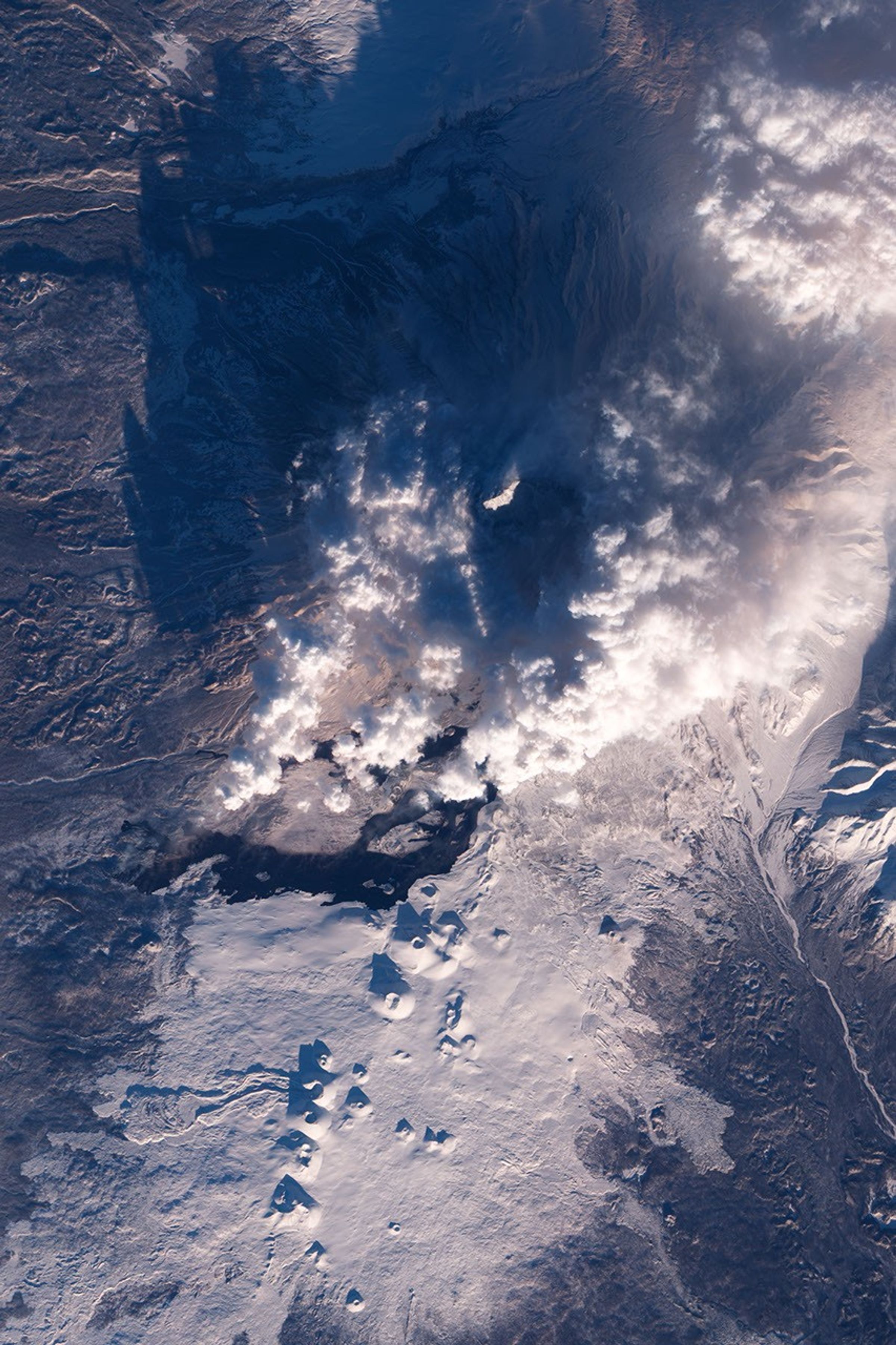 Klemetti reported that the eruption in late November occurred along two fissures. In these images, volcanic plumes—likely a combination of ash, water vapor, and other gases—apparently emerge from an east-west crack on the volcano surface. South of the plumes and the lava flow, multiple volcanic cones litter the surface of Tolbachik, casting shadows to the north in the low-angled sunlight.
