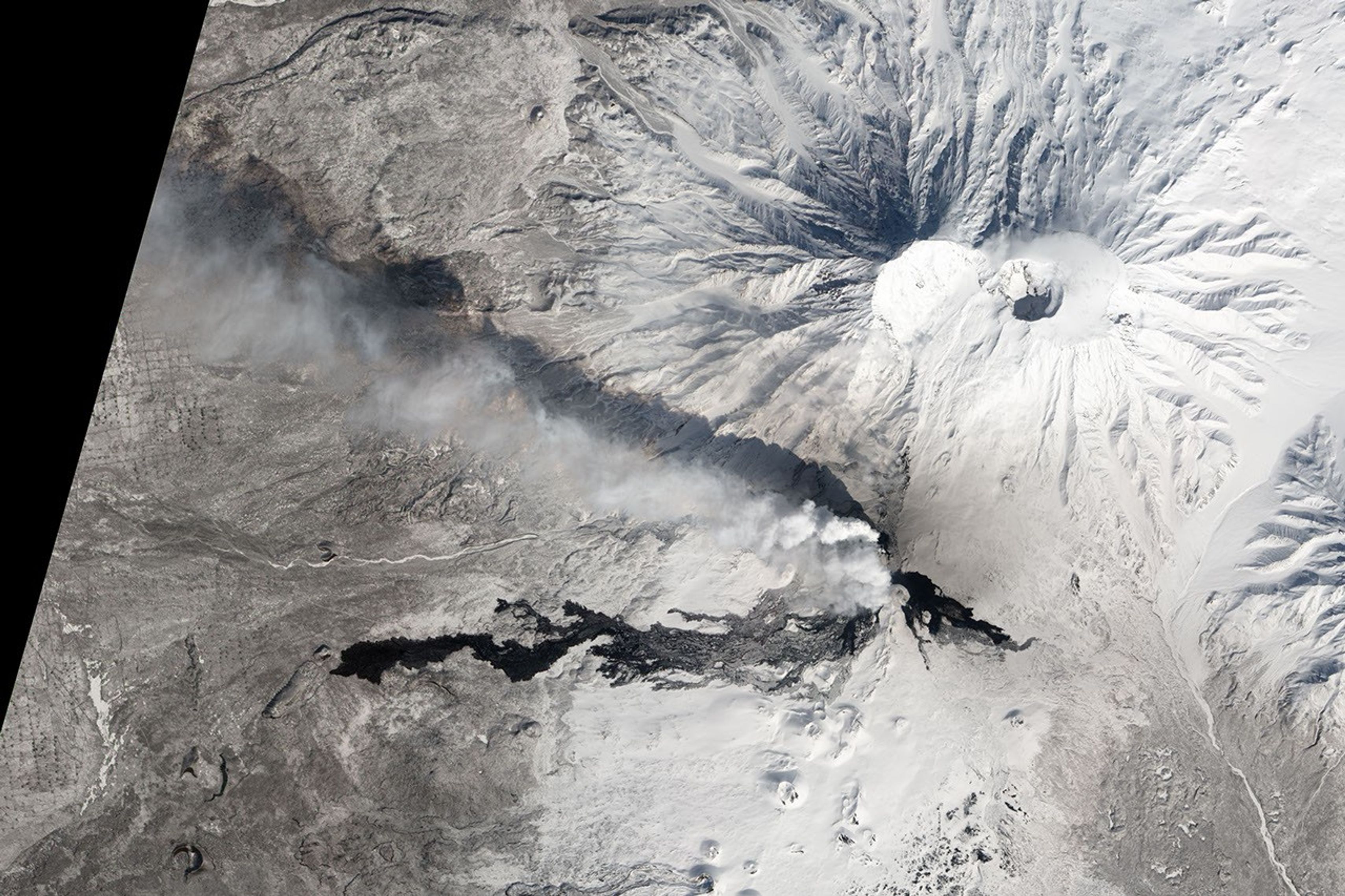 This April 5, 2013, natural-color image of Plosky Tolbachik, Ostry Tolbachik, and Tolbachinksy Dol was acquired by the Advanced Land Imager (ALI) on NASA’s Earth Observing-1 (EO-1) satellite.