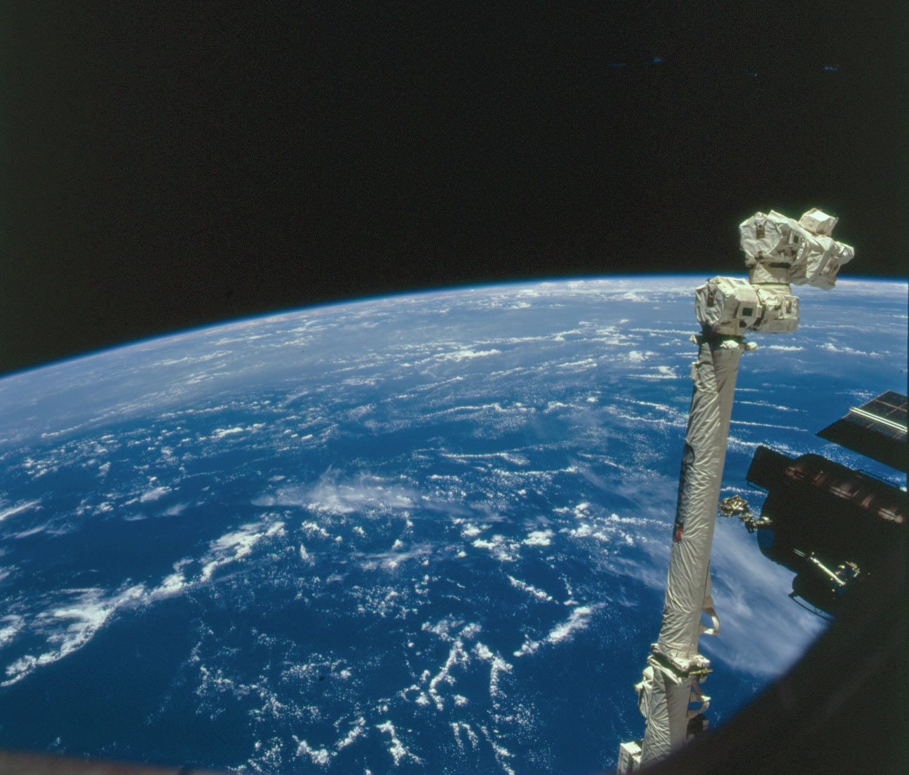 Shuttle astronauts frequently track Saharan dust storms as they blow from north Africa across the Atlantic Ocean. Dust palls blowing from Africa take about a week to cross the Atlantic. Recently, researchers have linked Saharan dust to coral disease, allergic reactions in humans, and red tides. The top photograph, a classic image showing African dust over the Caribbean, was taken at a time when few scientists had considered the possibility. The image was taken by Space Shuttle astronauts on July 11, 1994 (STS065-75-47). This photograph looks southwest over the northern edge of a large trans-Atlantic dust plume that blew off the Sahara desert in Africa. In this view, Caicos Island in the Bahamas and the mountainous spines of Haiti are partly obscured by the dust. Closer to the foreground, (about 26 degrees north latitude), the skies are clear.