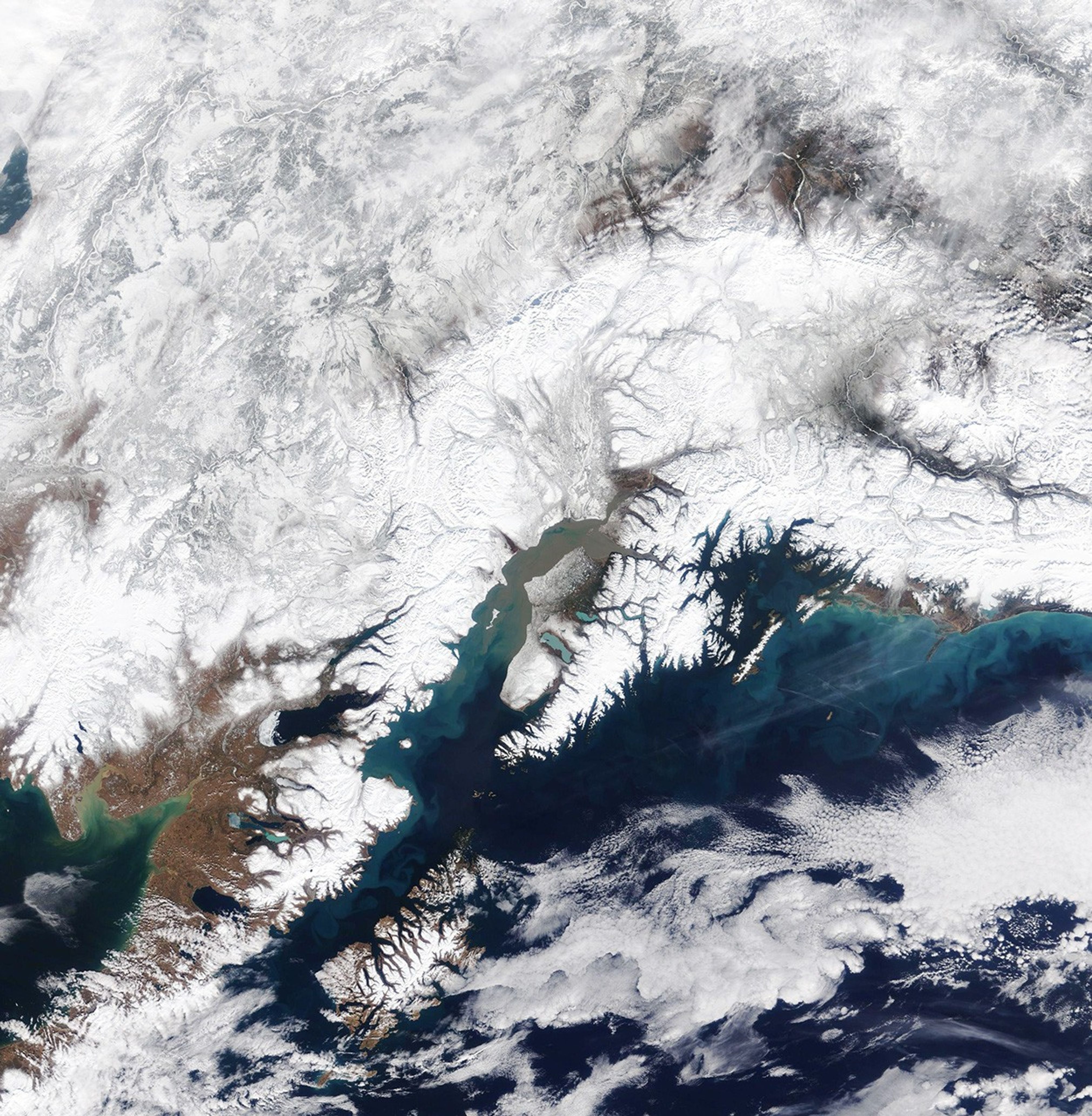 While the north and northwest parts of the state were wetter than usual, other parts were unusually dry. These natural-color images, acquired with MODIS on NASA’s Terra satellite, show Anchorage on March 30, 2018 (left), and March 30, 2019 (right). According to reports, March 2019 is only the second time on record that there was no measurable snowfall in Anchorage during the month.