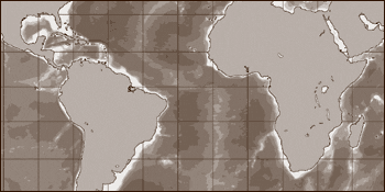 The Atlantic coasts of Africa and South America appear to fit together neatly, like the pieces of a jigsaw puzzle. The same shape is also traced out by the Mid-Atlantic Ridge, shown on this map by the light-colored area (representing relatively shallow seas) between the two continents.