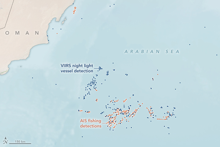 NASA Earth Observatory images by Lauren Dauphin, using VIIRS day-night band data from the Suomi National Polar-orbiting Partnership and AIS-based fishing effort and vessel presence data from Global Fishing Watch . Photograph copyright Trygg Mat Tracking. Story by Michael Carlowicz .