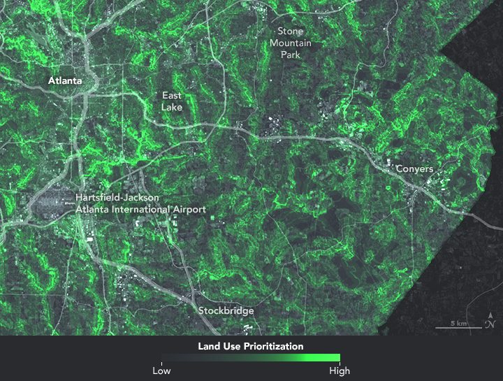 Using satellite data, researchers participating in NASA’s DEVELOP program have mapped Atlanta’s living infrastructure. “The goal was to help the Nature Conservancy identify locations across the metro region for land protection,” said Christopher Cameron, the project lead.