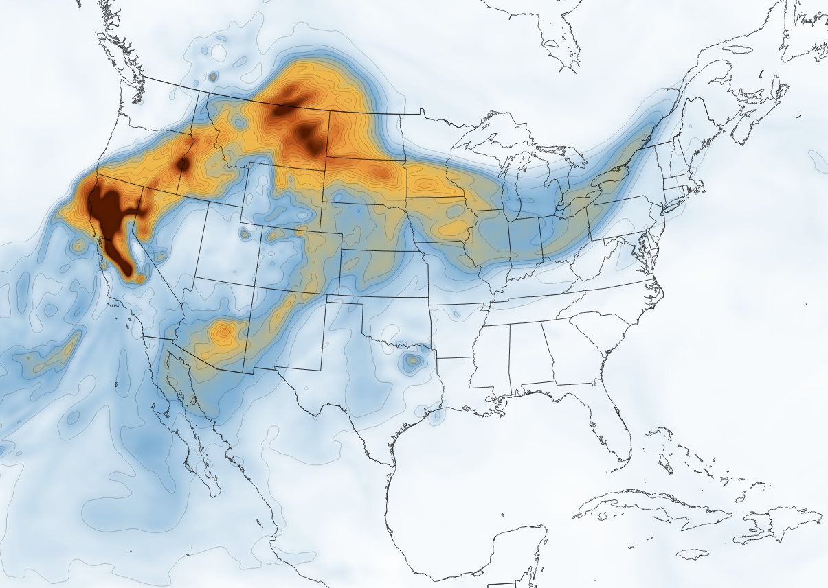 Wildfire smoke has significantly degraded air quality across Northern California and is spreading toward central and eastern parts of North America. Citizens reported hazy skies in North Dakota, Indiana, and even Virginia. Wildfire smoke is particularly harmful because it contains fine particulate matter that can cause breathing and lung problems, particularly for people with asthma.