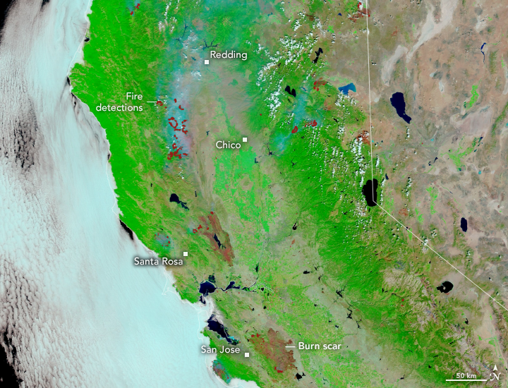 After more than a week, the seemingly relentless wildfires across Northern California appeared to be waning and better controlled thanks to lighter winds, lower air temperatures, and some extra firefighting assistance to aid California’s crews. Nonetheless, the fires have left extensive scars on the landscape.