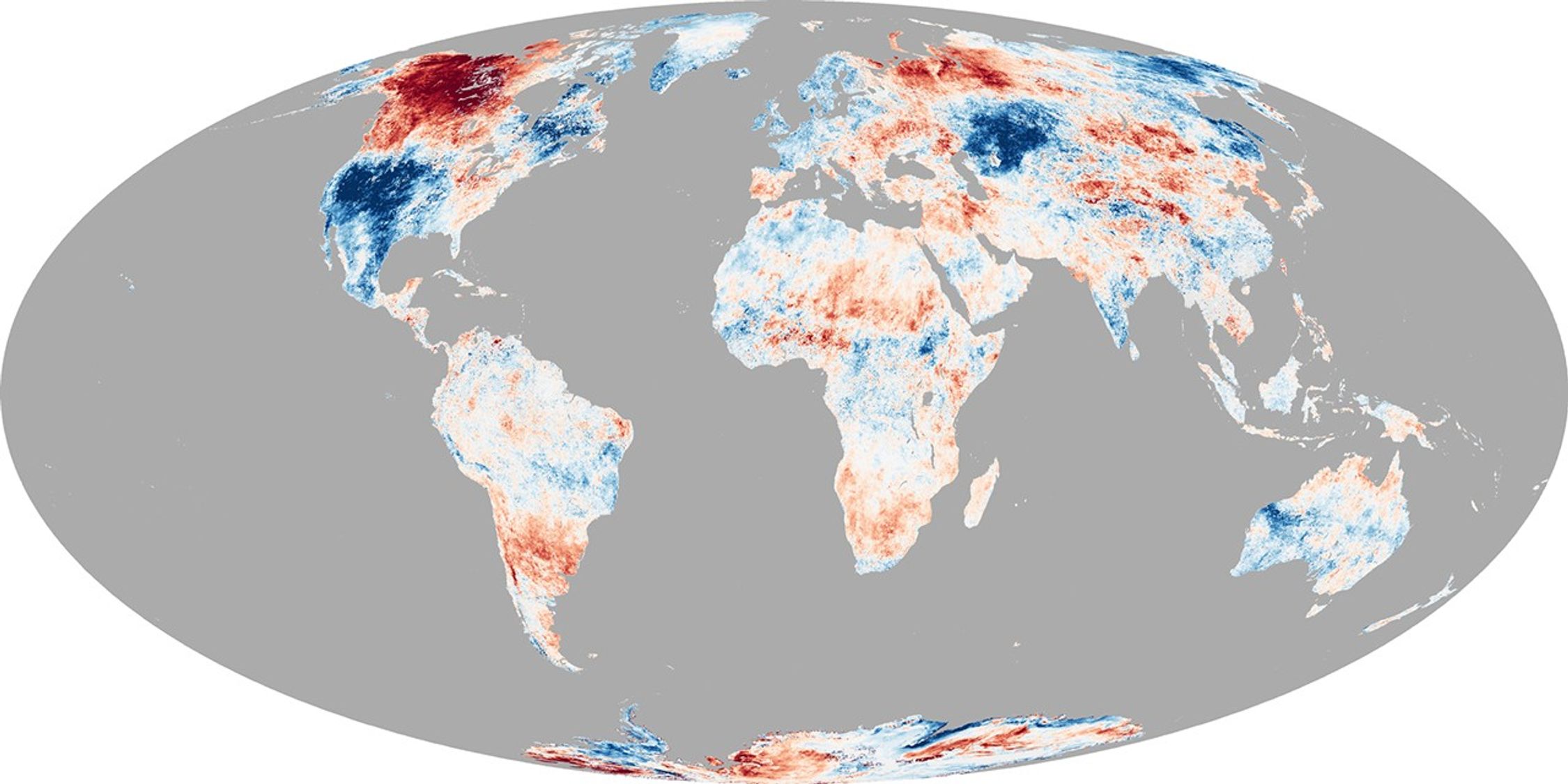 NASA Earth Observatory maps by Joshua Stevens, based on land surface temperature anomaly data from the NASA Earth Observations (NEO) Website. Caption by Mike Carlowicz.