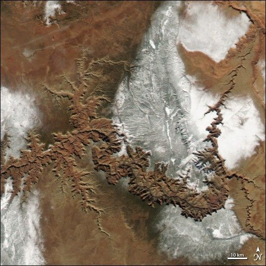 Also visible in this satellite image is the science research town of LosAlamos immediately north of the monument. Most famous for its role in the making of the first atomic weapons, Los Alamos continues to be a major center for science research and computer modeling of complex systems.