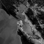 Note how plumes of sediment and other features in the water are less distinct and have less contrast in the coastal band than the blue band. The coastal band is sensitive to aerosols and other atmospheric effects that scatter light and make the view of San Francisco Bay seem hazy. By comparing the coastal blue and the blue bands, scientists can then correct for the difference and get a better view of what is happening at the water surface instead of in the air.