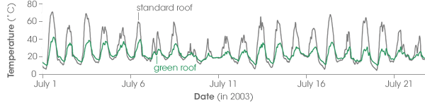 Recent heat wave tolls show the gravity of warming temperatures. The Chicago heat wave of 1995 claimed more than 700 lives. The record-warm European summer of 2003 claimed between 22,000 and 45,000 lives. “Can we air condition our way out of these heat waves? Not always,” Gaffin says. “So how can we cool these cities down? There aren’t many strategies we can choose. But green roofing looks like a great way to alleviate these problems.”