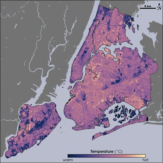 - Keeping New York City “cool” is the job of NASA’s “heat seekers” (2006) from NASA Goddard Institute for Space Studies. Accessed July 31, 2006.