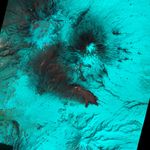 A false-color image (lower) reveals more features on the active volcano. At the summit, a red “hot spot” may indicate where fresh lava is being extruded from the lava dome. To the southeast, an active lava flow appears as a similar hot spot. In these wavelengths, bare rock and ash are gray, and snow and ice appear cyan. These images were acquired near noon on April 22, 2011, by the Advanced Land Imager (ALI) aboard the Earth Observing-1 (EO-1) satellite.