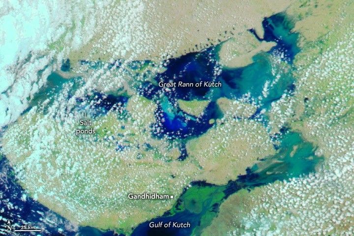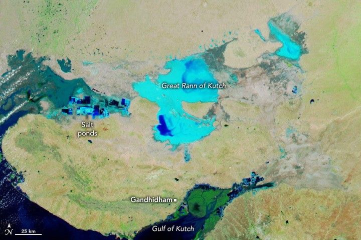 Water pooled in low-lying wildlife sanctuaries and salt flats in the area, including the Great Rann of Kutch. But water also swept through towns and cities surrounding these sparsely populated areas. In the process, it flooded tens of thousands of homes, caused power outages, swamped farmland, and displaced tens of thousands of people. The Indian news outlet ETV Bharat even reported a sharp increase in snake bites in one part of Rajasthan because of the flooding.