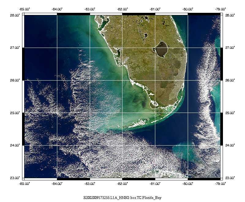 This image of black water off the coast of Florida was acquired on January 9, 2002, by theSea-viewing Wide Field-of-view Sensor (SeaWiFS). Scientists and local fishermen are not sure what is coloring this typically turquoise water black. Amid growing concern, scientists are now trying to determine the source of the black water.