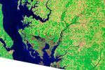 The Thematic Mapper (bands 7,4,2) on the Landsat 5 satellite acquired these images of Blackwater National Wildlife Refuge on Sept 21, 1984 (top) and August 31, 2011 (bottom). Infrared light is combined with visible light to help differentiate between muddy water, bare earth, and plant-covered ground in these images. Dry, vegetated areas appear bright green, and a patchwork of fallow and vegetated fields range in hue from coral to light green.
