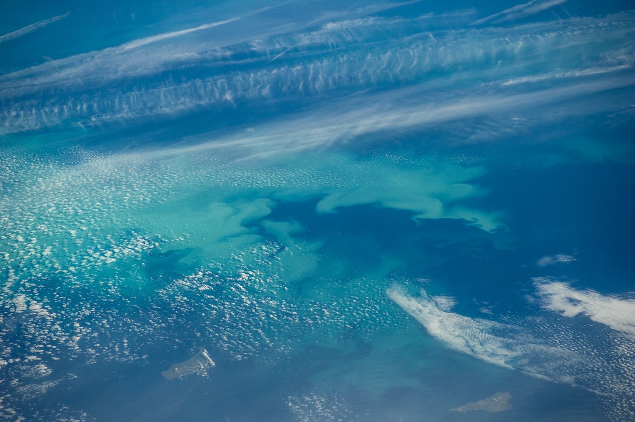 On September 4, 2014, the Moderate Resolution Imaging Spectroradiometer (MODIS) on NASA’s Aqua satellite acquired a natural-color image (top) of a bloom southwest of Nunivak Island and the coast of Alaska. The bloom was still visible a day later when astronauts aboard the International Space Station took photographs (below).