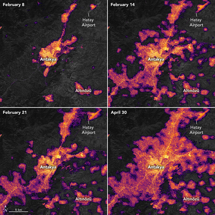 - NASA Earth Observatory (2023, February 27) Dark Nights in Antakya. Accessed May 12, 2023.