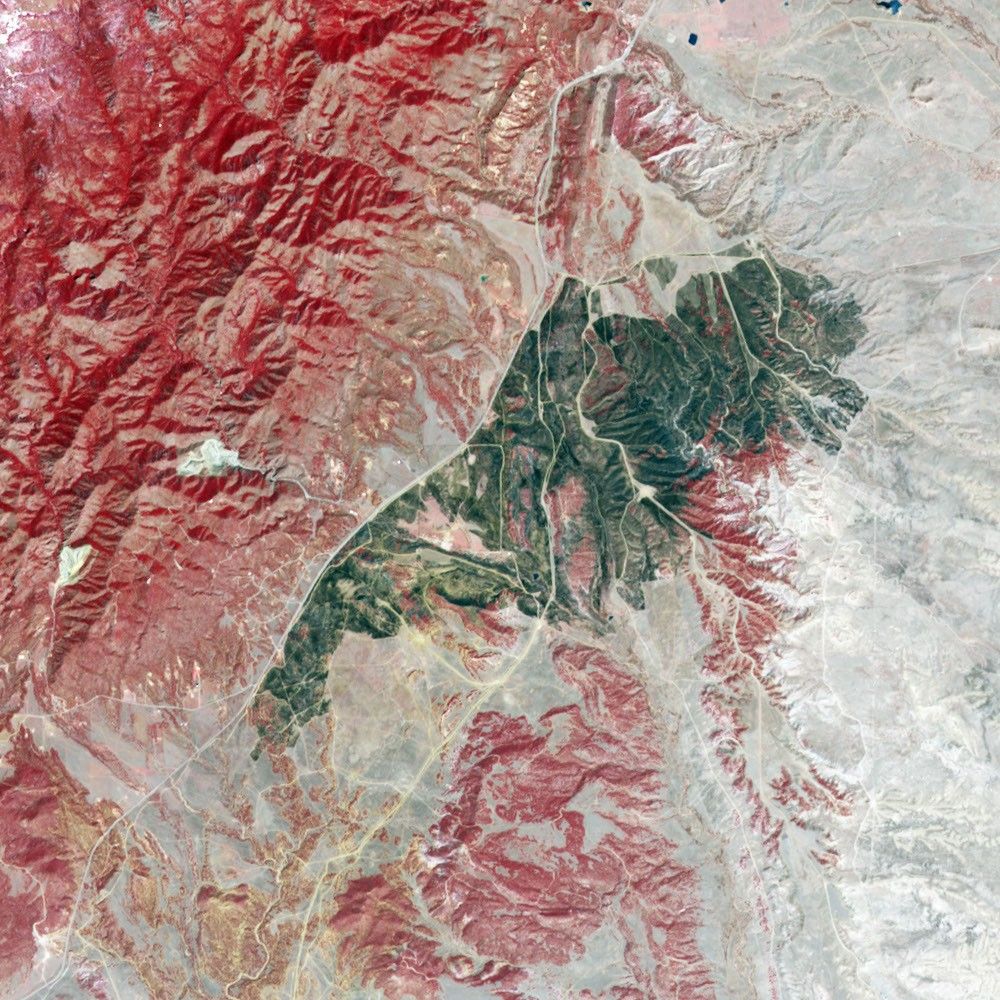 This image of the area burned by the fire was captured by the Advanced Spaceborne Thermal Emission and Reflection Radiometer (ASTER) on NASA’s Terra satellite on April 20, 2008. The area is about 18 kilometers southwest of Fort Carson, in southern El Paso County, Colorado. The image uses visible and infrared light to enhance the differences between vegetation (red), bare ground (gray and beige), and the burned area (charcoal). Highway 115 (gray line running northeast-southwest along western edge of burned area) served as a firebreak, helping firefighters to keep the blaze from spreading into the more rugged terrain to the west.