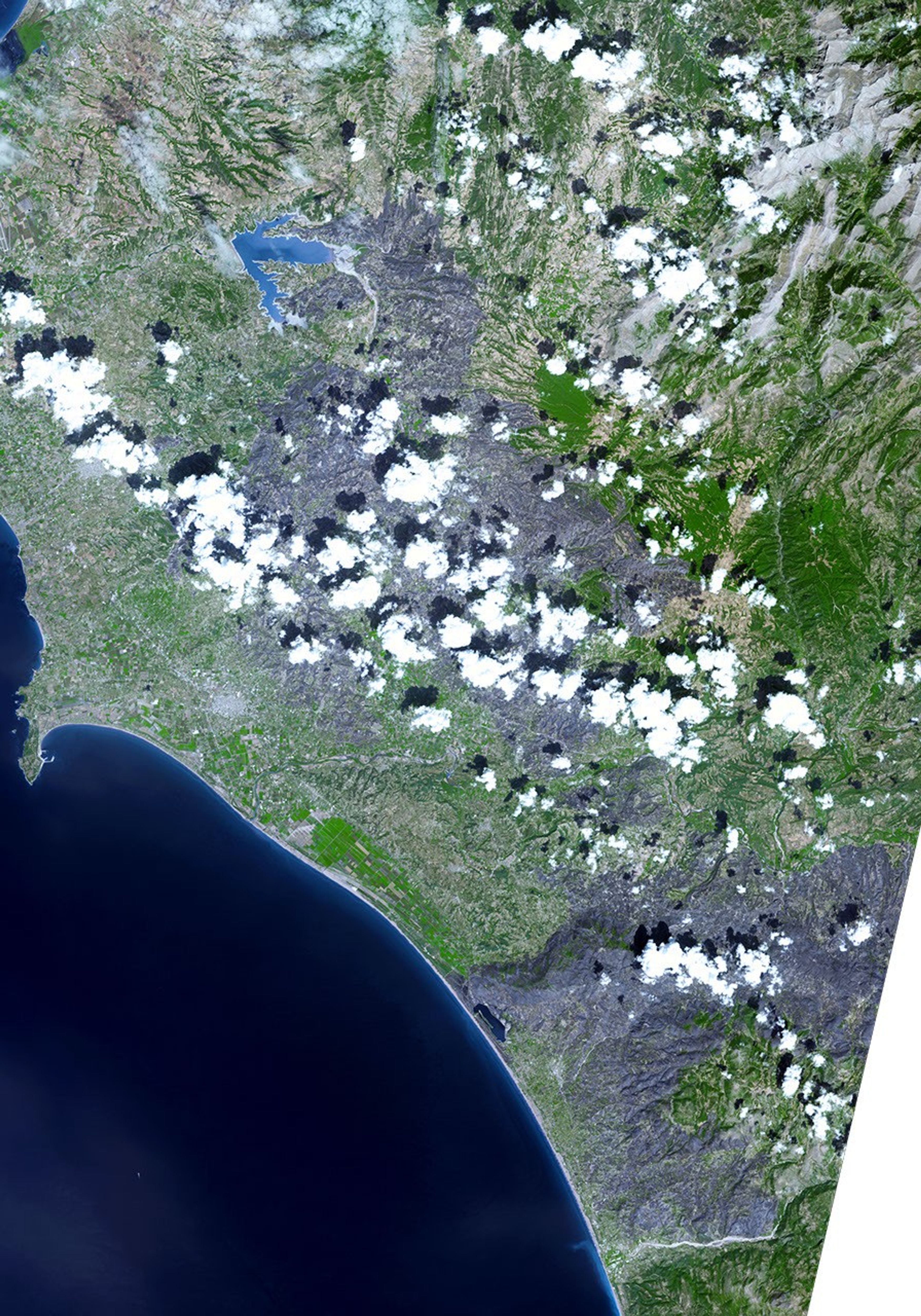 The wildfires that ravaged Greece in August 2007 narrowly missed destroying the birthplace of the Olympics, scorching areas to the west and north instead. On September 4, 2007, the Advanced Spaceborne Thermal Emission and Reflection Radiometer (ASTER) on NASA’s Terra satellite captured this image of burn scars the fires left behind.