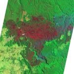 The Advanced Land Imager on the Earth Observing-1 (EO-1) satellite acquired these images of the fire and part of its burn scar on October 26, 2013. In a natural-color image, the burn scar appears brown. In the false-color image, unburned vegetation appears green, while burned areas are red. Actively burning fires are orange. The false color image is made from a combination of infrared and visible light.