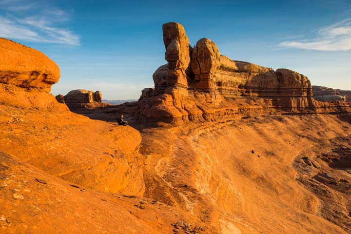 The land here has most recently been shaped by erosion, which formed the park’s famous winding canyons and towering pinnacles. Rivers have been a key source of that erosion, most notably from the Green and Colorado. The Green River flows south through Wyoming and makes a quick dip into Colorado before winding through myriad canyons in Utah. It joins the Colorado River near the middle of the park; that river ultimately empties into the Gulf of California. Hikers can get a good look at the river junction from a viewpoint at the aptly named “confluence overlook trail.”