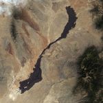 Near the lava flow’s northeastern end is the town of Carrizozo. Both southeast and northwest of the lava flow, the landscape appears dark, but this results not from volcanic rocks but from vegetation-lined hills.