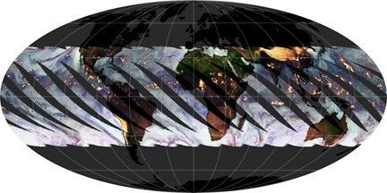 Just as the geosynchronous satellites have a sweet spot over the equator that lets them stay over one spot on Earth, the polar-orbiting satellites have a sweet spot that allows them to stay in one time. This orbit is a Sun-synchronous orbit, which means that whenever and wherever the satellite crosses the equator, the local solar time on the ground is always the same. For the Terra satellite for example, it’s always about 10:30 in the morning when the satellite crosses the equator in Brazil. When the satellite comes around the Earth in its next overpass about 99 minutes later, it crosses over the equator in Ecuador or Colombia at about 10:30 local time.