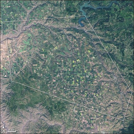Astronaut photograph ISS013-E-17394 was acquired May 10, 2006, with a Kodak 760C digital camera using a 400 mm lens, and is provided by the ISS Crew Earth Observations experiment and the Image Science & Analysis Group, Johnson Space Center. The image in this article has been cropped and enhanced to improve contrast. The International Space Station Program supports the laboratory to help astronauts take pictures of Earth that will be of the greatest value to scientists and the public, and to make those images freely available on the Internet. Additional images taken by astronauts and cosmonauts can be viewed at the NASA/JSC Gateway to Astronaut Photography of Earth.