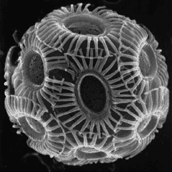 During the past two summers (1997-98), a type of one-celled microscopic plant changed the color of the Bering Sea from its natural deep blue to a shimmering aquamarine in a matter of weeks. These plants, known as coccolithophores, produce and then shed hubcap-shaped, limestone (calcite) scales called coccoliths. Like all phytoplankton, the coccolithophores contain chlorophyll, are unicellular and have the tendency to multiply rapidly near the surface of the ocean. Yet, in large numbers, coccolithophores dump tiny white calcite plates by the bucketful into the surrounding waters and completely change its hue.