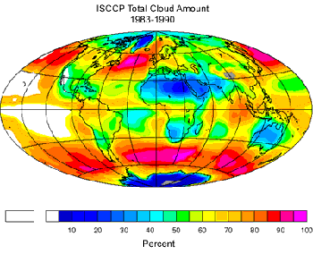 The International Satellite Cloud Climatology Project, begun in the early 1980s, is an effort to take advantage of the visible light and infrared information currently available from existing meteorological satellites by constructing a detailed database of average global cloud cover and cloud types (Figure 3). Although these observations are useful, their spatial resolution is limited to about 2.5 miles (four kilometers), and data are available only at two wavelengths-one in visible light and one in the infrared region of the spectrum. While these data allow estimations of cloud top pressure, cloud coverage, and cloud optical depth (a measure of the amount of sunlight that passes through), they still do not provide the detail scientists need to accurately model the roles clouds play in climate change.