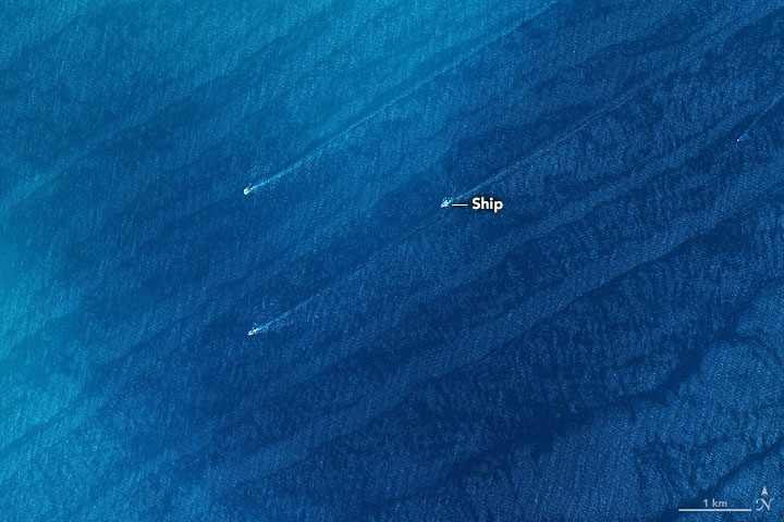 The milky, light-colored waters are probably filled with coccolithophores, which have calcium carbonate plates that appear chalky white when amassed in great numbers. Greener waters may be rich with diatoms or suspended sediment. It is impossible to know for sure without taking direct water samples. The brightness of the color may reflect the density of the phytoplankton, while the various swirls and shapes trace the intricate movements of currents, eddies, and tides.
