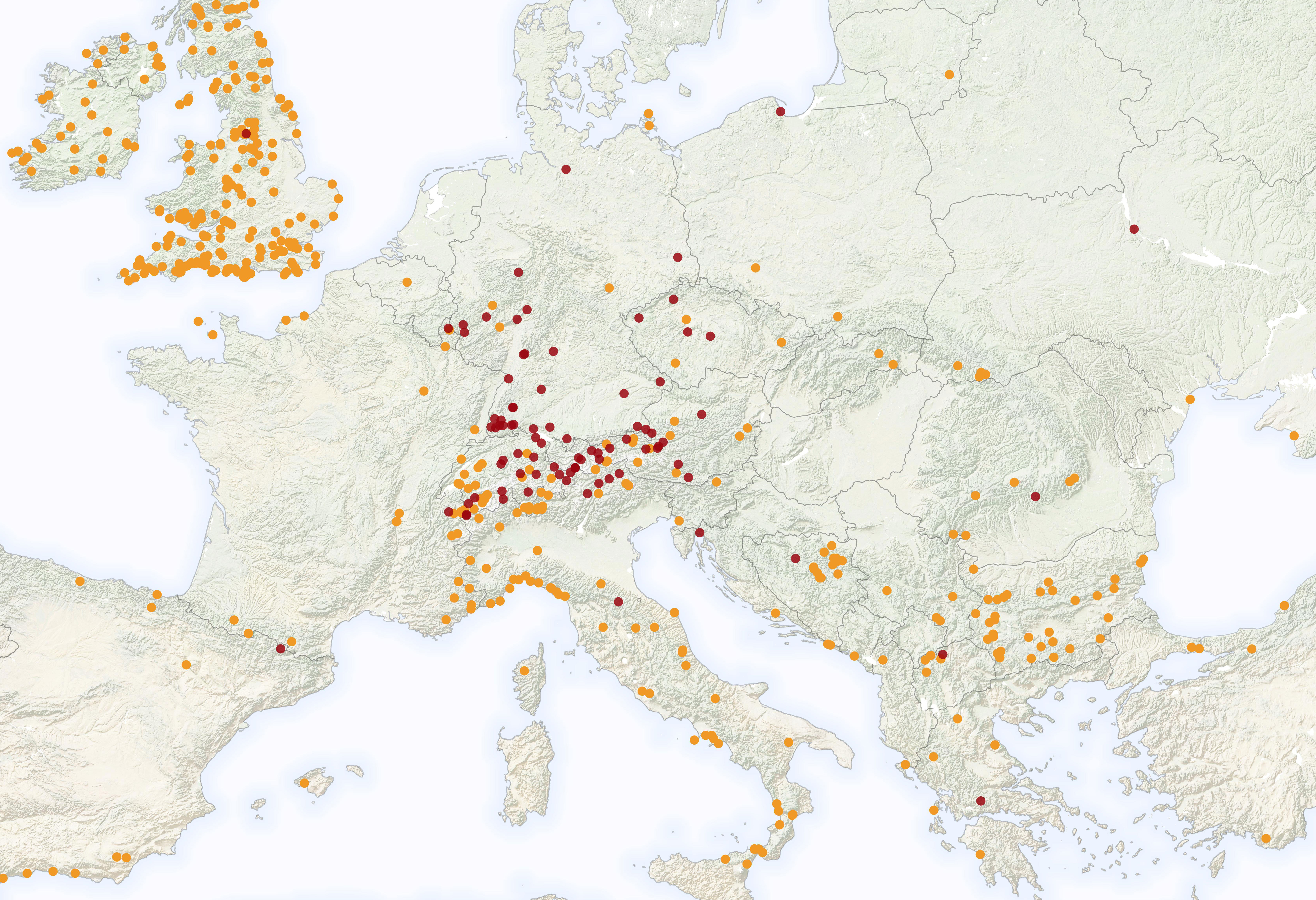 The map above shows citizen science reports compared to items being entered into NASA’s Global Landslide Catalog. The red points show European landslides reported by citizen scientists since March 2018, while yellow points represent reports added to the news-driven Global Landslide Catalog since 2007. Citizen scientist data is more prevalent over hilly regions of Germany and the Alps, where landslide susceptibility is high but reports from the NASA Global Landslide Catalog are sparse.