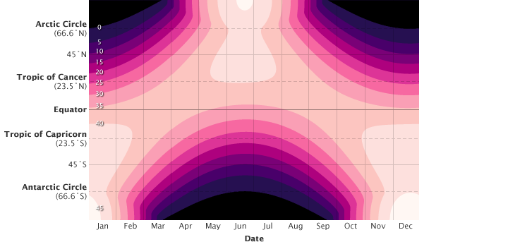 In the “summer hemisphere,” the combination of more direct sunlight and longer days means the pole can receive more incoming sunlight than the tropics, but in the winter hemisphere, it gets none. Even though illumination increases at the poles in the summer, bright white snow and sea ice reflect a significant portion of the incoming light, reducing the potential solar heating.