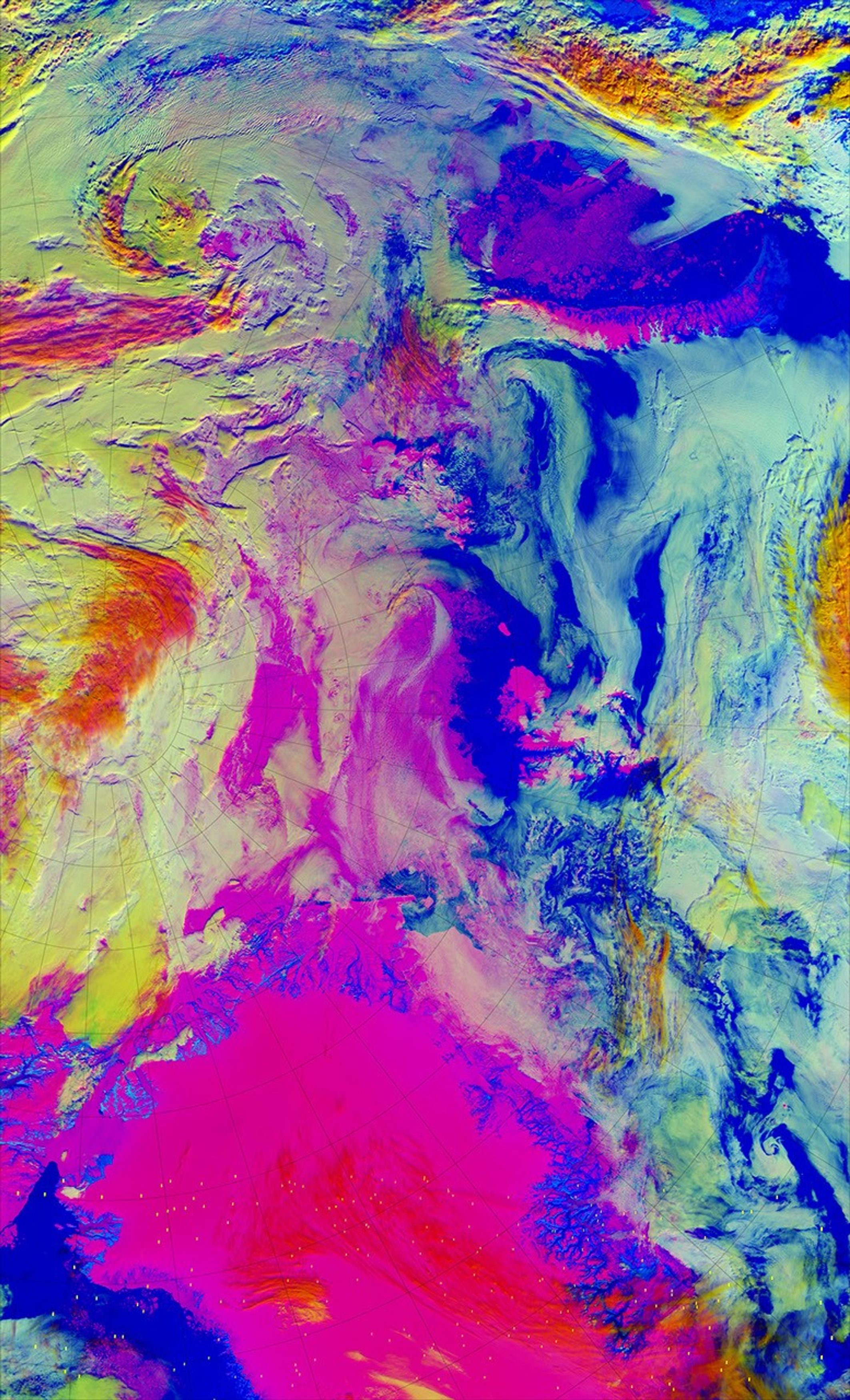 In a photo-like satellite image, the faintest of shadows or shading of grey may give them away, but more often, clouds over the poles simply disappear against the background, camouflaged from the satellite’s view by the underlying snow and sea ice. For those trying to track clouds from space, to understand cloud physics, say, or to predict the weather, the problem is frustrating. Only with a combination of visible and invisible wavelengths of light, such as infrared light, do clouds become distinct from the snow and ice below.