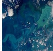 In the long term, the plants seem to be good for the environment. Coccolithophores make their coccoliths out of one part carbon, one part calcium and three parts oxygen (CaCO3). So each time a molecule of coccolith is made, one less carbon atom is allowed to roam freely in the world to form greenhouse gases and contribute to global warming. Three hundred twenty pounds of carbon go into every ton of coccoliths produced. All of this material sinks harmlessly to the bottom of the ocean to form sediment.